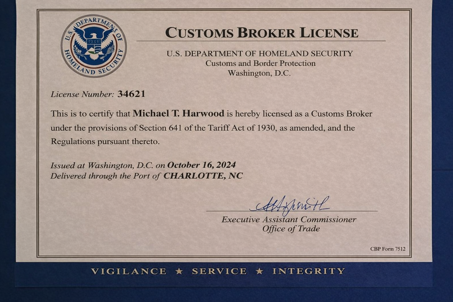 U.S. Customs and Border Protection – Continuous Bond #BND-86421-TGX Active surety bond covering all in-bond shipments, guaranteeing payment of duties, taxes, and penalties. Licensed Customs Broker – License #34621 Authorized to prepare and file CBP Form 3121 for Transportation & Export (T&E) and Immediate Export (IE) entries. U.S. Customs and Border Protection – Continuous Bond #BND-86421-TGX Active surety bond covering all in-bond shipments, guaranteeing duties, taxes, and penalties. Customs Broker License #34621 Authorized to file CBP Form 7512 for Transportation & Export (T&E) and Immediate Export (IE). TSA Known Shipper & Background-Checked Approved for pharmaceuticals, electronics, and restricted goods under bonded security.